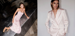 A refined palette of pink expressed through modern silhouettes. Dresses, tailoring and luxe separates for celebrations and special occasions.